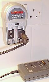Charging is done by switching the unit off, coupling the output lead to the adapter, and inserting the adapter in to the 9V charger. Follow the instructions on the charger (the typical is to leave the battery to charge for about 14 hours).