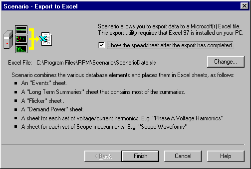 If your PC has sufficient memory to to comfortably run multiple applications then feel free to have Scenario "Show the spreadsheet after the export has completed", else ensure this is unchecked. Make a note of the path where the export file is located as this will be needed should you choose not to show the file after export. If the location is not to your liking then click on the "Change" button and define a more suitable path.