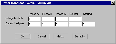 A formula for calculating the multiplier for adapting non standard clamps is: Ratio*(Afsd/5)*(2/Vfsd) where:Afsd = clamp full scale amps