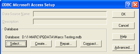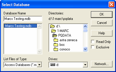 Locate and select the copied *.MDB file (in our example this was "Marcs Testing.MDB"), and then click "OK".