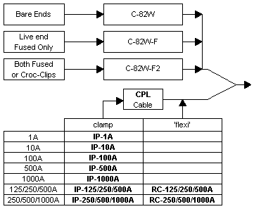 Each phase can be fed from different sources, these are shown below. The C-82Wx cables are voltage, the table are current sensor options.