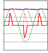 Note what was not said when introducing the resistor (at the top of the page) as a linear load; Nothing was said about the voltage curve being a perfect sinewave! It was simply stated that the current curve would be a perfect replica of the voltage curve, and it is this characteristic that makes the load, in this case the resistor, linear. We have seen that in real life the input voltage can be extremely flat-topped. This would therefore make a sinewave current curve demanding excess current at the peak i.e. more than the source is expecting to deliver! This clearly shows the statement "if it's a sinewave, it's linear!" is grossly flawed. Also, linearity has nothing to do with current angle i.e. the standard thinking on power factor. A non-linear load can have a perfect current angle i.e. neither inductive nor capacitive, yet still have a power factor. Don't confuse the two issues! Keep this in mind as we investigate further.